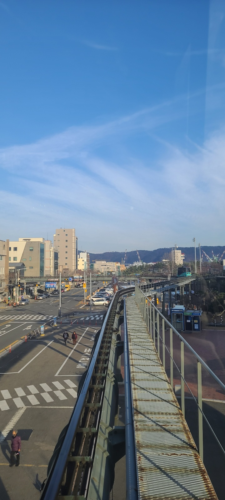 맨 앞자리로 앉습니다. 모노레일이 천천히 움직입니다. 기차나 차를 타게 되면 휙휙 지나가는 주변 경치를 제대로 볼 수가 없는데, 모노레일은 천천히 운행하다 보니 주변 경관을 자세히 볼 수 있어 여유롭습니다. 우리의 삶도 천천히 지나갔으면 좋겠습니다.